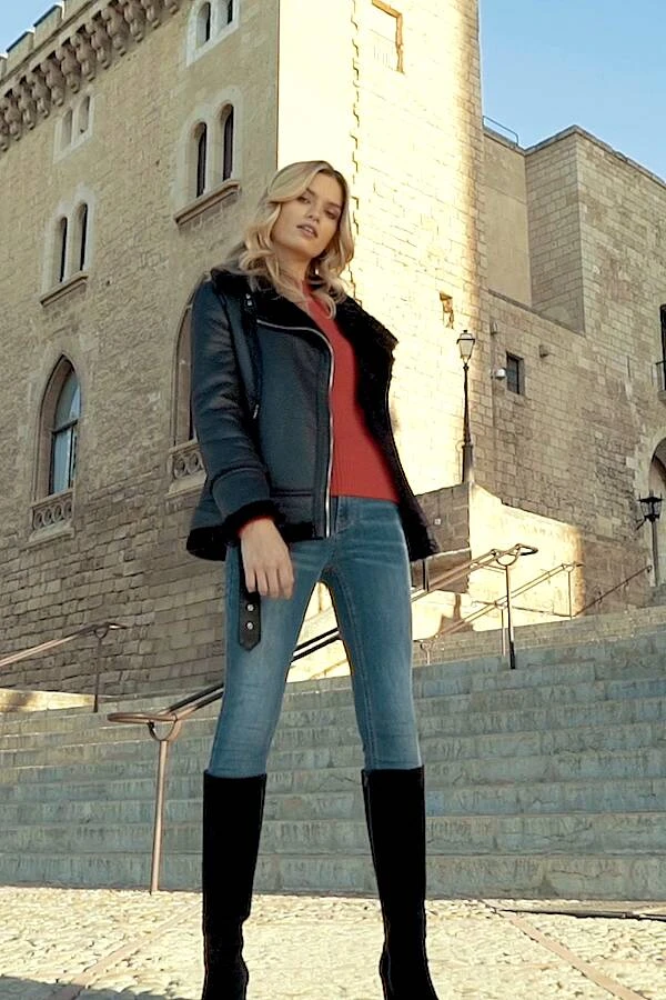 Black Faux Shearling Biker Jacket